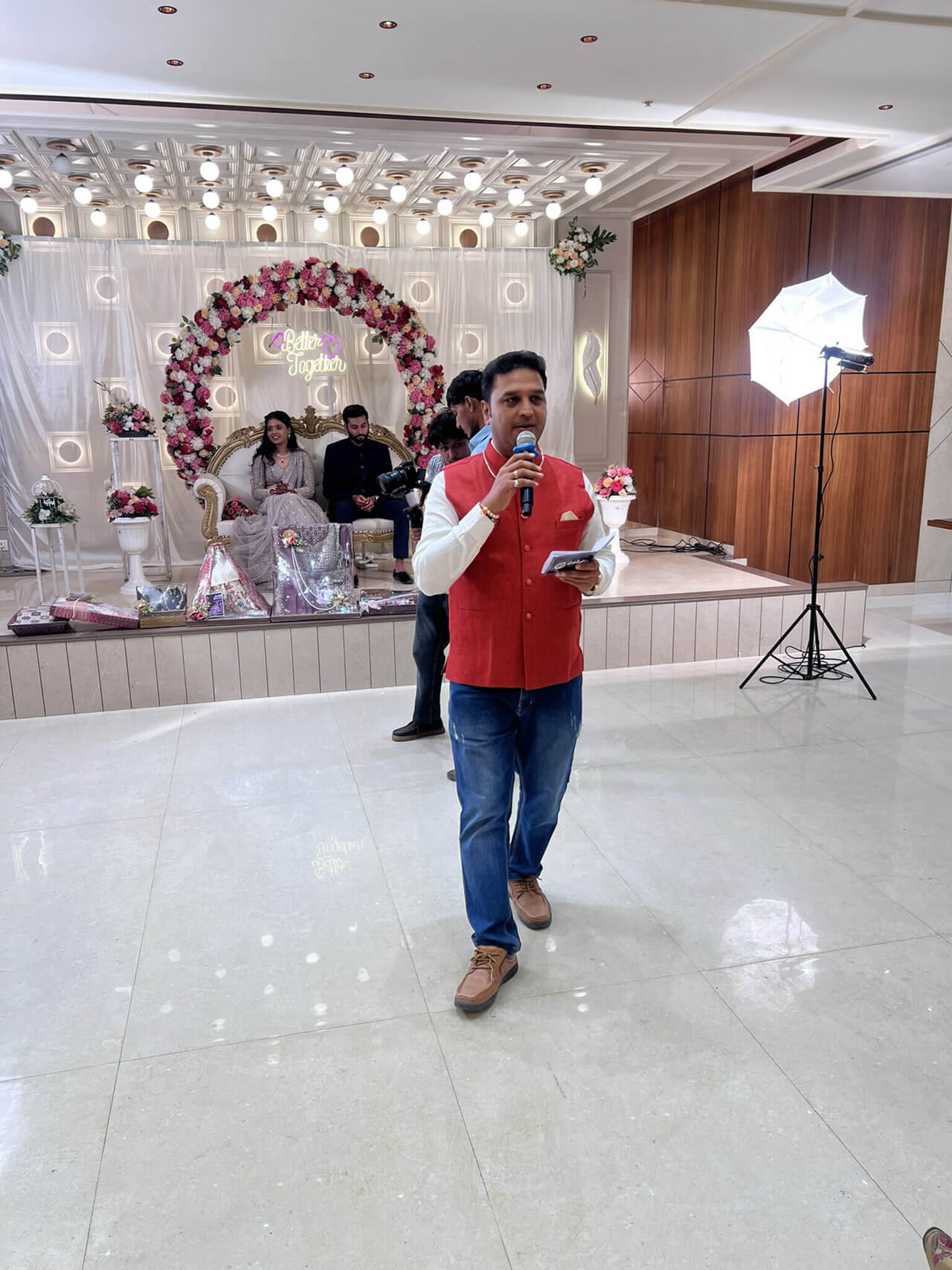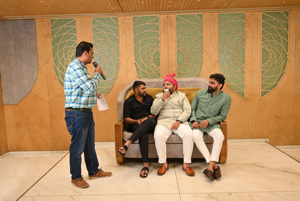 Anchor Goldie is the Leading Anchor in Ahmedabad, Emcee in Ahmedabad, Event Host in Ahmedabad, Anchor For Wedding in Ahmedabad, Corporate Event Anchor in Ahmedabad, Wedding Anchor in Ahmedabad, Professional Anchor in Ahmedabad, Male Anchor in Ahmedabad has 5+ years of experience in anchoring and entertaining industries, known for his humour & energetic performance and make a very interesting topic for the audience which attaches to the relevancy in every anchoring.